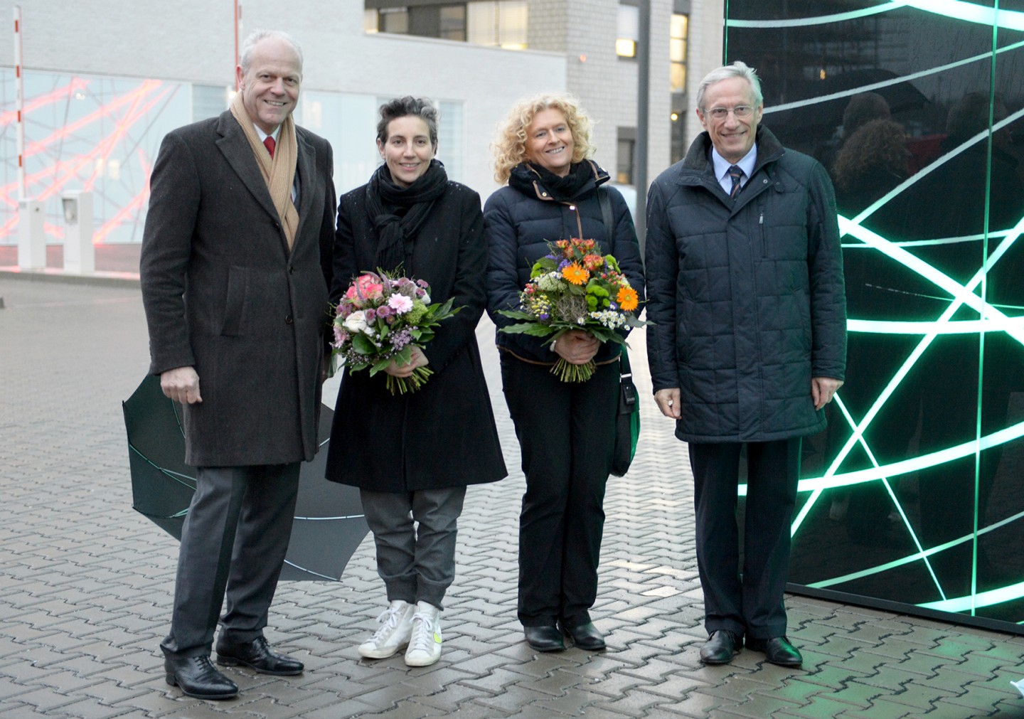 "The impulses for the form and color of the light come from the Fraunhofer Institutes themselves", explains Annette Sauermann. "The artworks radiate such vibrancy because they reflect the intensity of the data traffic at any given moment in the computer networks within the institutes. Even the selection of the light scenes is controlled by data traffic. This means that the internal activities of those in the institute are visible in abstract form to those outside." The more information is exchanged electronically in the institutes in one day, the more brightly and more dynamically the "Knowledge Networks" will radiate light.